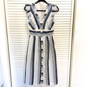 In lightweight linen, and with ruffled sleeves, this dress is a natural at picnics, BBQs and farmers' markets, and fits in just as easily on beach vacations. Plus, it has pockets, making it the ultimate wear-everywhere staple.