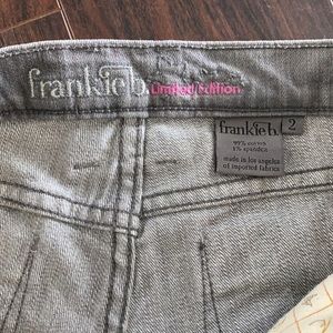 Frankie B’s limited edition skinny jeans. Low rise. Size 2. Washed distressed gray. In good preowned condition. They were altered to shorten the length.