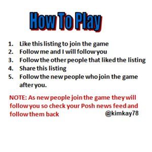 Liked, followed and shared. Please like, follow and share my follow game. May your shares, followers and sales be exponential!! Thank you!😊