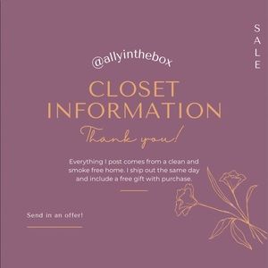 Everything I post comes from a clean and smoke free home and is very well cared for! I ship the same day and include a free gift!