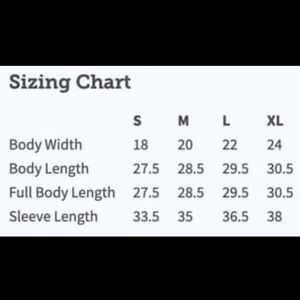 Sizes available are S, M, L and XL.