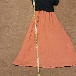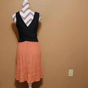 Color block dress, with crisscross top of the dress! V-NECK front and back, Crankily material at the base of the dress! Can be dressed up are down..in excellent condition...