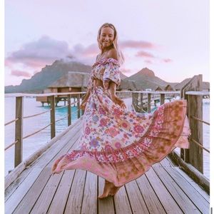 EUC Spell and the Gypsy Collective Buttercup maxi skirt in Meadow. Size Small available. Small is NWT. Fully elastic waist with drawstring. Unlined. 100% viscose, no lurex. Waist measurement for small shown in last pic! Very stretchy waist.