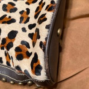 @lawyercowgirl it is a gently used bag. I updated the listing to show the minimal wear. There is no stains or tears to the leather or the hide. The inside has no odor or stains. The wear is mainly to the leather on the bottom corners of the purse. No missing studs on the sides, or strap. Zipper works perfectly. It’s still a very beautiful bag.