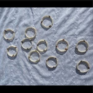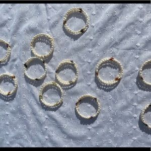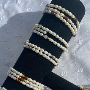 Cultured freshwater pearl accented with gemstones gold-tone beads memory wire bracelets.
