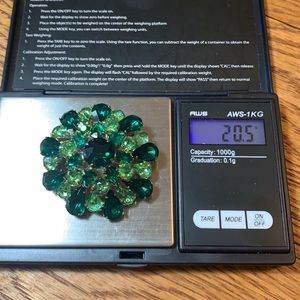 Gold-tone and different shades of green rhinestones