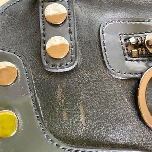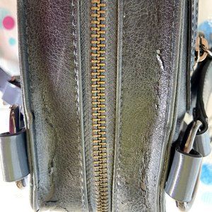 This beautiful purse has never left my closet. I bought it in 2003, the years went by and I never used it. Unfortunately, it is peeling in many places. The peeling is hardly noticeable, but I have taken a picture of each of the places where it's peeling or starting to peel. Please examine each picture carefully. Like I said, the places where it has peeled are not really noticeable, but my price reflects this.