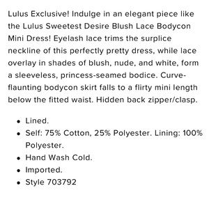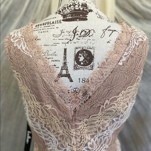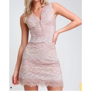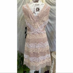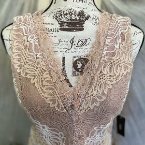 Lulu's Spring Summer White, Cream & Blush Lace V-neck Dress, Large, NWT