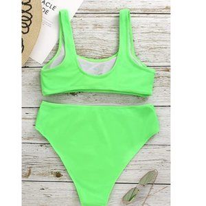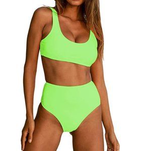 Women athletic two piece bikini set bandeau crop top. Cute crop tops with wide shoulder straps combine to create our chic high waisted bikinis for women. Pair with high cut bikini bottom for a sexy look, available in 2pc bathing suit for teens and womens bathing suit cut feminine and athletic. Womens crop top swimsuit for women sport is a idea for who love outdoors sport. Your green thong bikini swimsuit for women is bright.