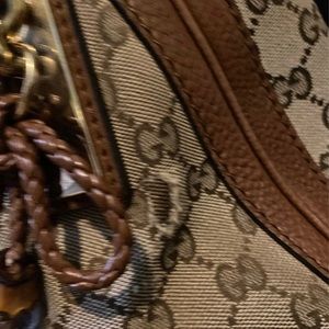 Pre loved gucci satchel large but in good condition hardware is scratched alittle and some wear on corners of bag!
