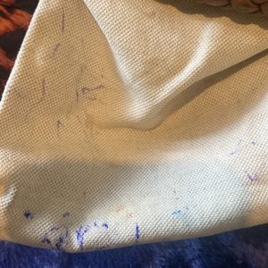 The are ink marks in the pocket, but with zipper closed you can’t see it!
