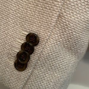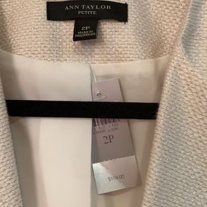 Cropped tweed ivory with metallic gold threading blazer from Ann Taylor. Featuring brown buttons at cuff. Never been worn with tag.