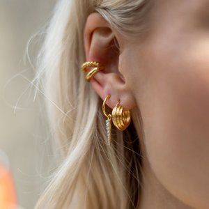 *NEW 925 Sterling Silver Textured Hoop Earrings C