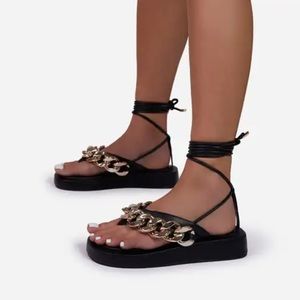 NWT!! Chain Thong Platform Gladiator Sandal- Black