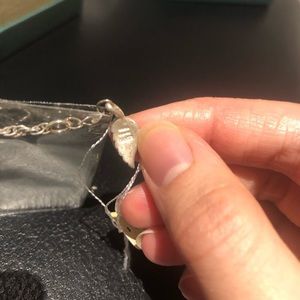There is slight tarnish that can be polished away/baking soda and vinegar on the end of the chain where it sticks out of the bag. This is because real silver can tarnish when in exposed air.