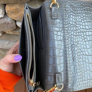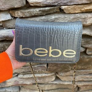 Gray crocodile pattern BEBE purse.