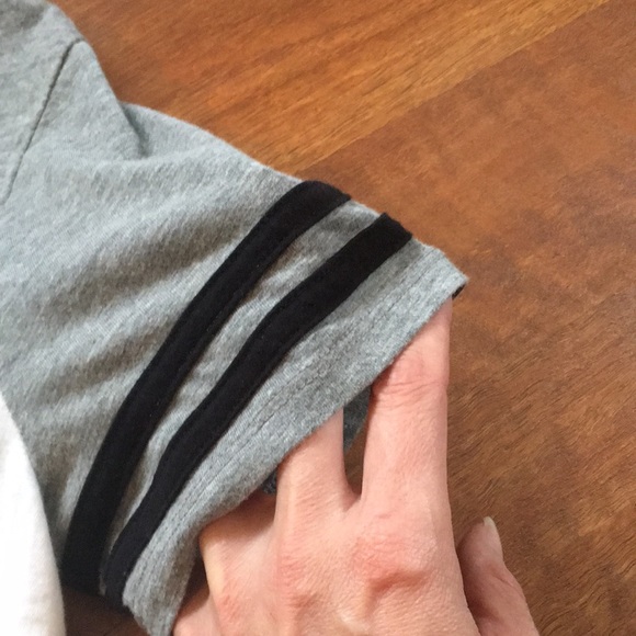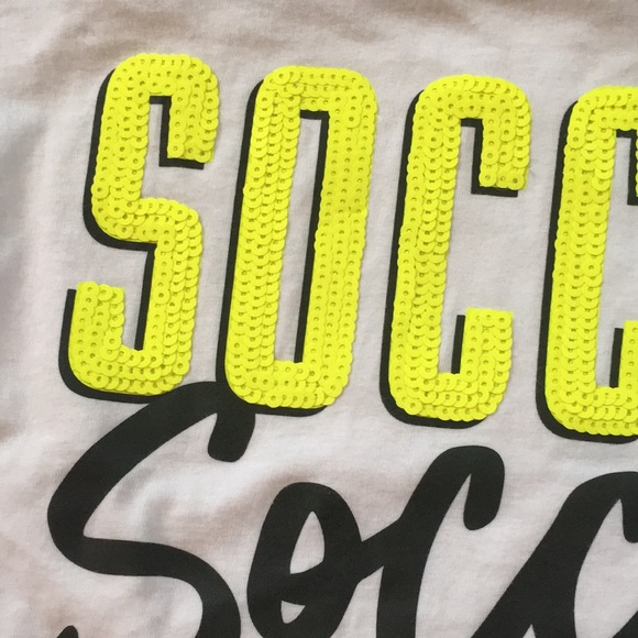 Excellent condition justice T-shirt with the words soccer soccer soccer written on the front. V-neck gray black white with neon soccer. The neon soccer is beaded. Never worn.