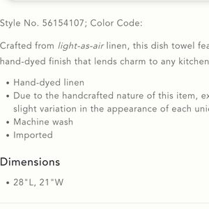 NWT, Anthropologie Marigold Linen Dish Towel. Light-as-air linen. Hand-dyed, flower-dyed finish.