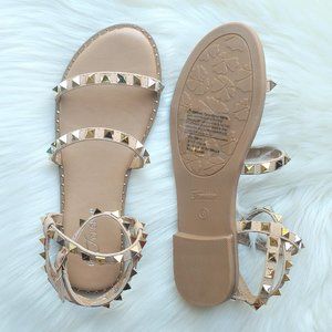 𝔹𝕆𝔾𝕆 Taupe Studded Strappy Vegan Leather Sandals