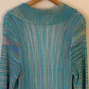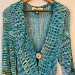 Approximate, taken by hand, cardi laid flat