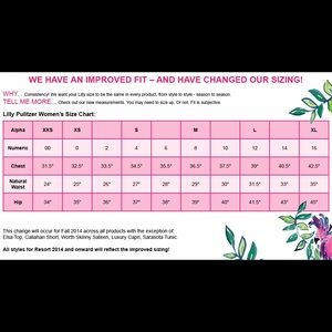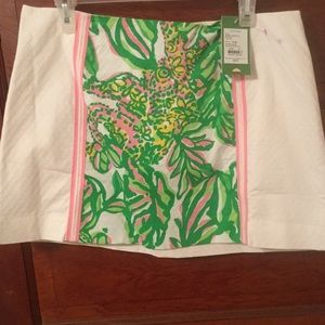 Description from Lilly's website: The Tate Skirt is a 17inch skirt that is a longtime favorite. This panel pink and green printed skirt will look great with a tight tank or your favorite button down.