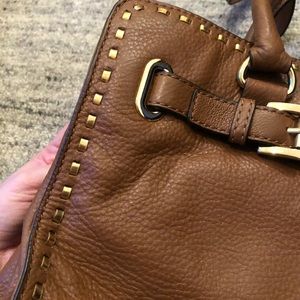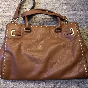 MK Hamilton large cognac gold trim tote - excellent new condition, large, tote, length 14” height 13” width 4” just gorgeous, chain link shoulder straps, top handles.