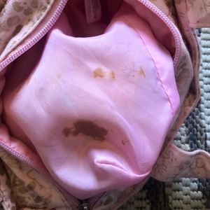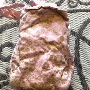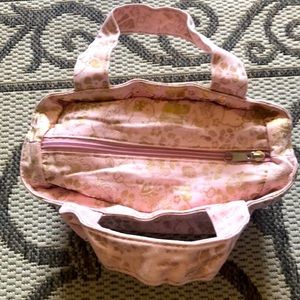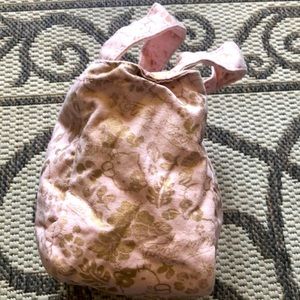 Hello Kitty pink & gold lunch bag; preloved from 2006; can be used for cosmetic bag; there are a few soy sauce stain inside (pls see last picture).