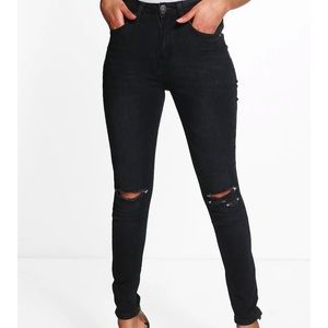 Faded black ripped knee skinny Jean. High waisted with distressed faded areas. Thick material for extra support. Never worn before! UK size 12 US size 8, it’s on the smaller side