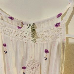 New With Tags, Mudd Sleeveless White Top, Size L. Boho, flowy summer style, Embroidery at neck, Sheer Crepe Material. NWT