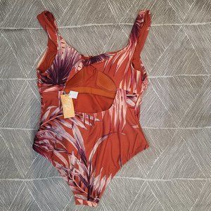 Kona Sol Burnt Orange Tropical Palm One Piece Suit