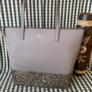Authentic Kate Spade Greta Court Penny Giltter Large Tote Cityscape - Grey.