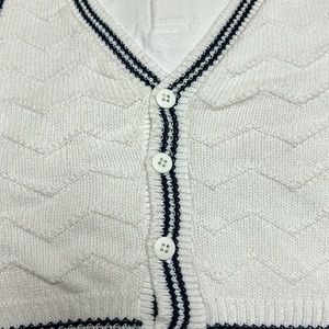 Navy and white shirt and sweater vest. Tennis whites for the youngest prepster!