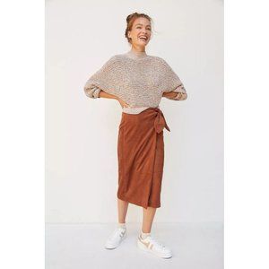 ANTHROPOLOGIE New Lauren Sueded Wrap Midi Skirt