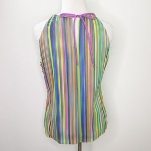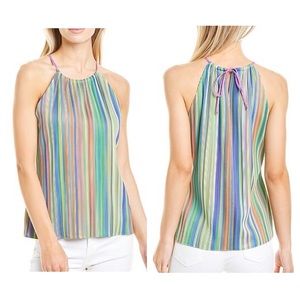 Drew Apparel Anthropologie Alina Top. Beautiful Sleeveless Colorful Striped Ribbed Top. Keyhole back with self-tie at neck. Fully Lined.