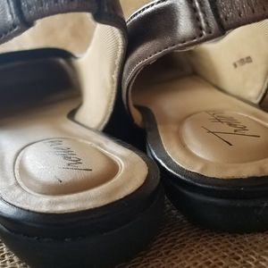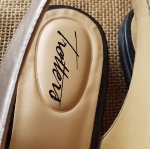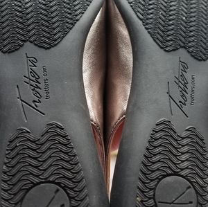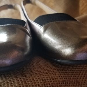 These Trotters bronze and black shoes are a size 8N. Brand new without the box. Very classy shoe with elasticized black strap over the back you just pull up, no buckling required. Also a wide black elastic on the top. NWOT