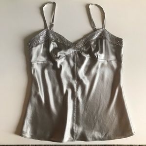 EXPRESS Silk Silver Tank with Sequins, Spaghetti Straps, Silvery Tank Top