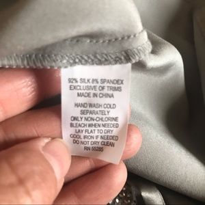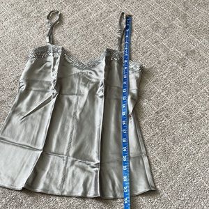 Gorgeous silk tank top with sequin detailing in a beautiful gray/silver color. Adjustable spaghetti straps.