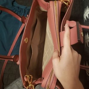 NWT Absolutely beautiful tulip pink MK satchel. Saffiano leather size large. 3 different compartments w/ interior zip pocket and 2 slip pockets. Durable & full of room! Detachable shoulder strap. Perfect condition w/ zero flaws.