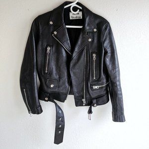 Acne Mock Black Leather Biker Jacket