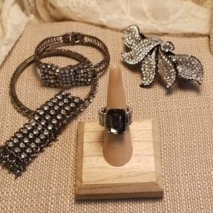 Black & Clear Rhinestone 11-Item Jewelry Bundle