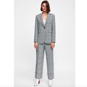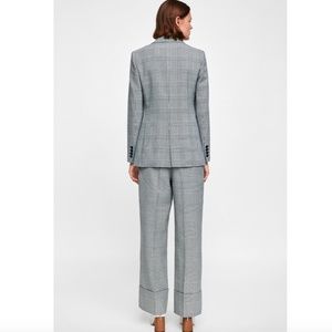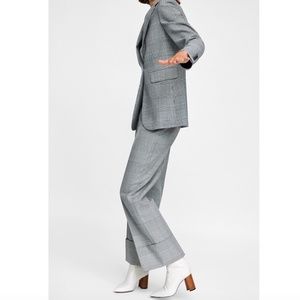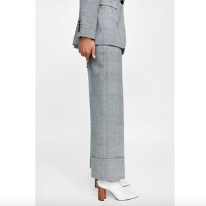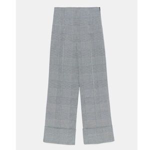 Zara Plaid Checked Palazzo Trousers With Turn-Up Hems