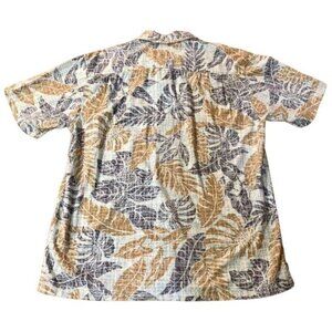 columbia shirt, hawaiian shirt, tropical shirt, camp shirt, leaf print, mens medium, blue tan shirt, summer shirt, casual shirt, beach shirt, travel shirt, luau outfit, resort wear, button up shirt, short sleeve, cruise wear, vacation shirt, spring outfit