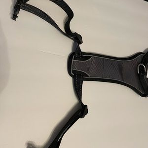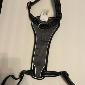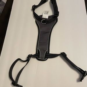 Large Dog Harness that is black. Shows instruction and has tags attached.