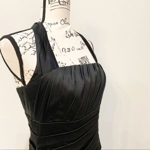 Really beautiful dress but, sadly, just didn't fit me ( I never wore it). Halter neck, Pleat detail in bodice, fully lined, Side zipper. Perfect for a wedding or event!