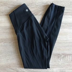 Good used condition size 2 Lululemon Train Times Pant. The color is black. There is a small snag near the knee area (see photo/video)