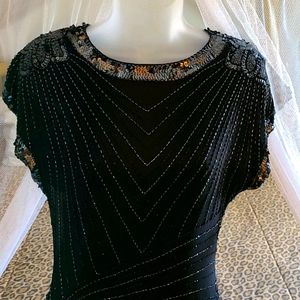 Oleg Cassini Vintage Black Beaded Sequin Dress