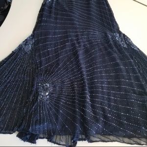 Vintage Oleg Cassini black beaded and sequin 100% silk dress. Photos can't describe this gorgeous, classy and sexy evening gown! Super liquid, sleeves are capped...shoulder pads removed. Open oval back with one hookeye closure. Flirty and fishtail swishy skirt, slim in the waist. Several sequined flower designs throughout the dress. Silk-lined, zips in the back. Wore to wedding, black tie event & formal night on cruise ship. This dress will not disappoint! Used condition some missing sequins.