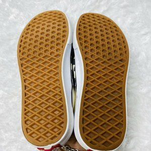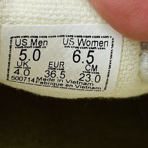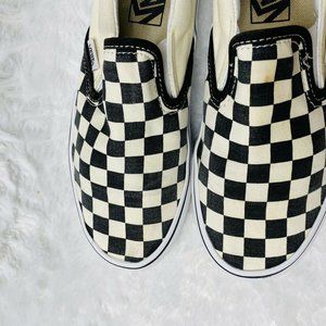 Vans Authentic Black White Checkerboard in womens size 6.5, Mens 5. These have been worn and show signs of wear including fading discoloration stretching of the elastic and staining. The outsole has come apart from the canvas in one area - please see close up picture. These are well worn and very clean. Shipped with USPS Priority Mail.