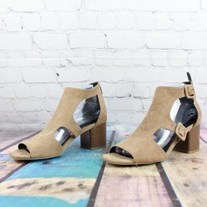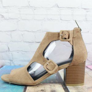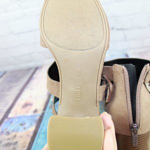 Indigo Rd. Mandi Brown Faux Suede Buckle Back Zipper Heel Sandals Size 8