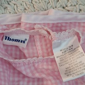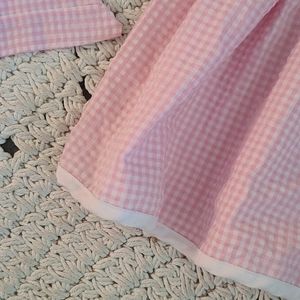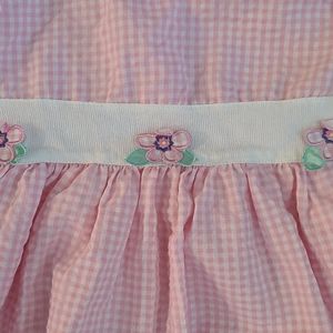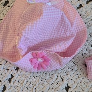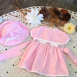 BEAUTIFUL THOMAS 18 MONTHS DRESS/ HAT IN PINK AND WHITE CHECK PATTERN FABRIC FLOWER TIE ACCENTS